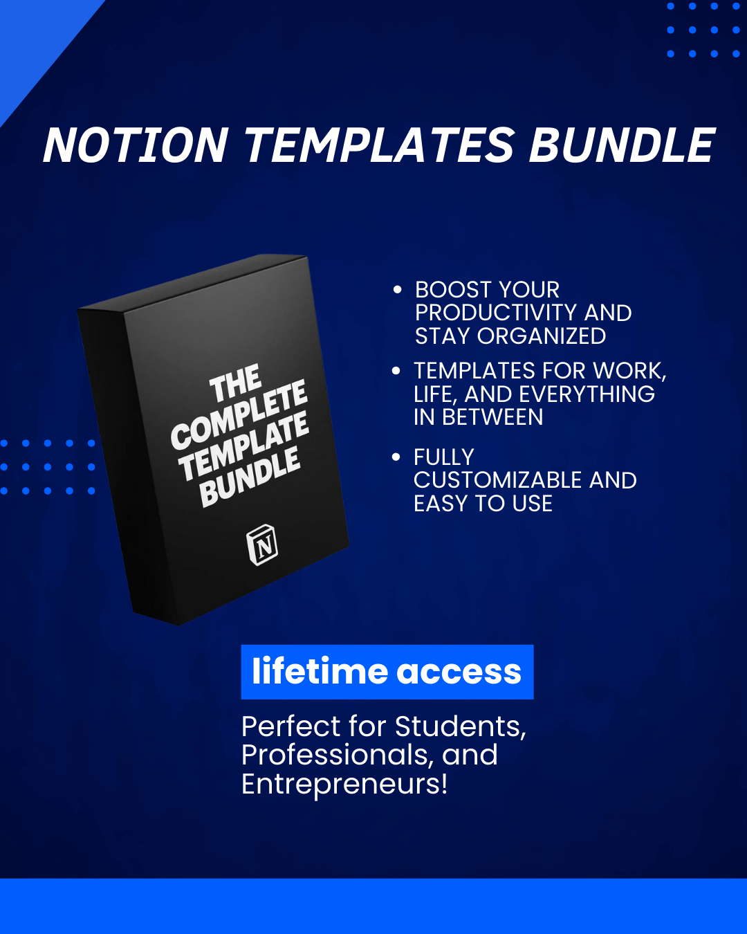 Transform the way you work and manage your daily tasks with the Notion Templates Bundle Ultimate Pack—your all-in-one solution for a more structured and productive life!